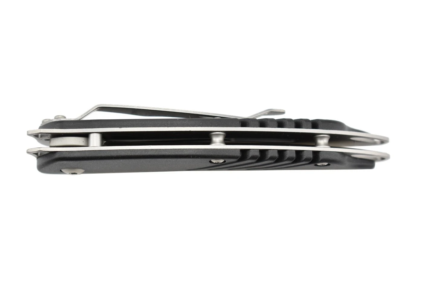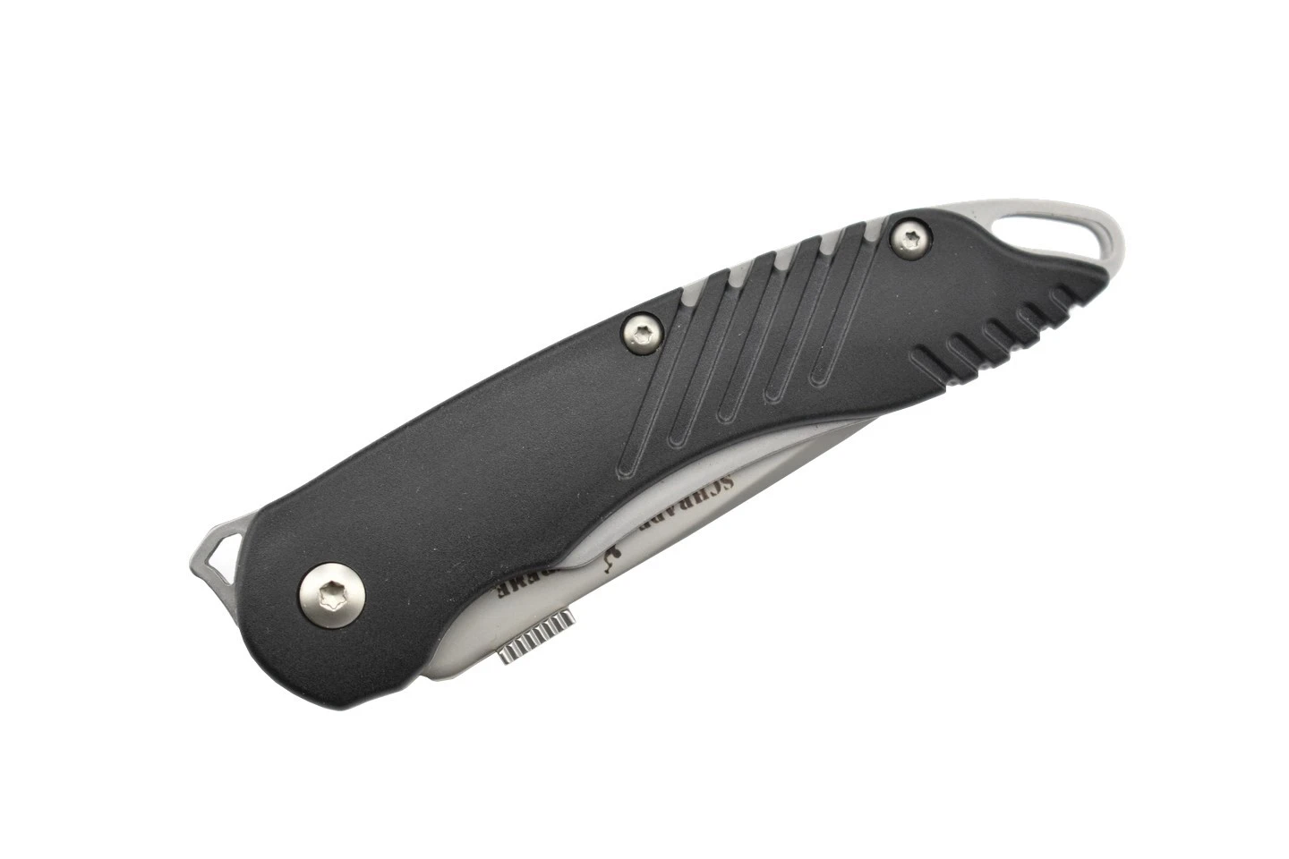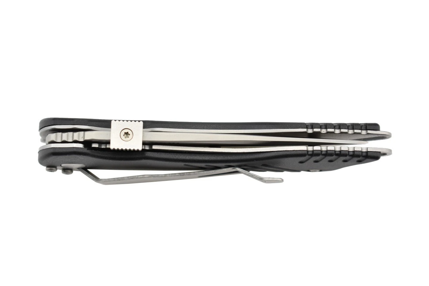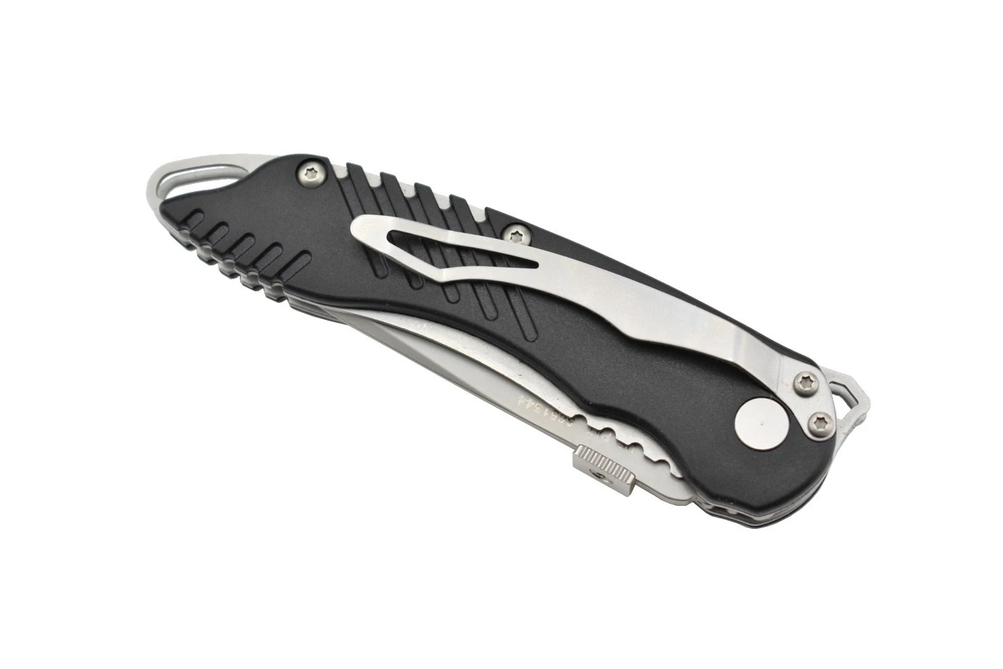Le Schrade SCHA1 offre une ouverture rapide assistée par ressort. Il suffit d’ouvrir partiellement la lame et le ressort la tire jusqu’à ouverture complète. Il est équipé d’un solide cadre en acier inoxydable, recouvert d’un manche en ABS texturé très adhérent, avec un clip-ceinture. La lame est en acier inoxydable 4034 avec une finition sablée. Un thumb stub permet une ouverture à une main.