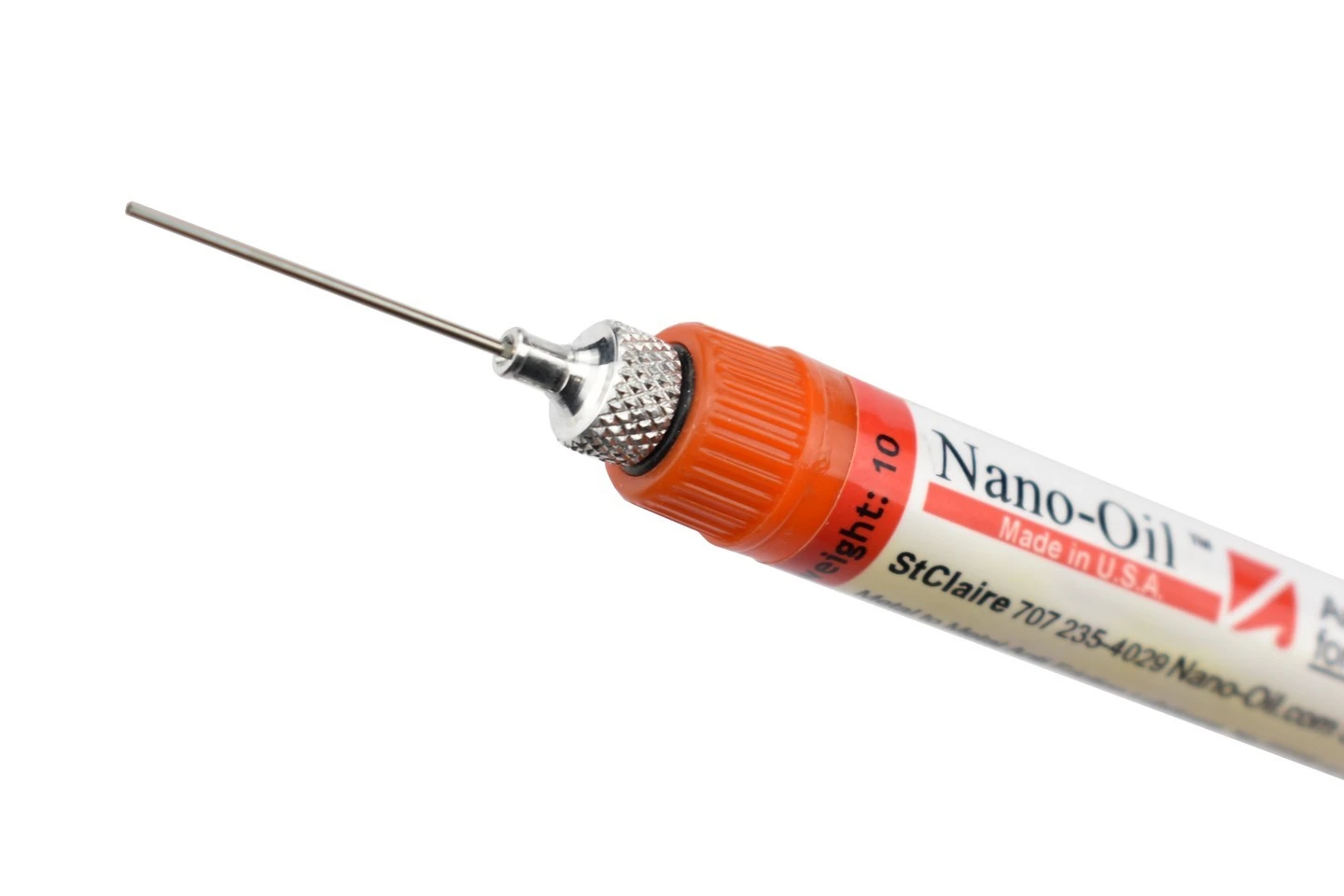 Elle contient des particules nanoscopique de 0,09 microns qui agissent comme un roulement à billes, et améliorent la durabilité du graissage, tout en préservant de la poussière. Le flacon, d’une contenance de 8ml, est surmonté d’une aiguille pour une application d’une grande précision. Nano-Oil est fabriquée par les laboratoires StClaire aux États-Unis.